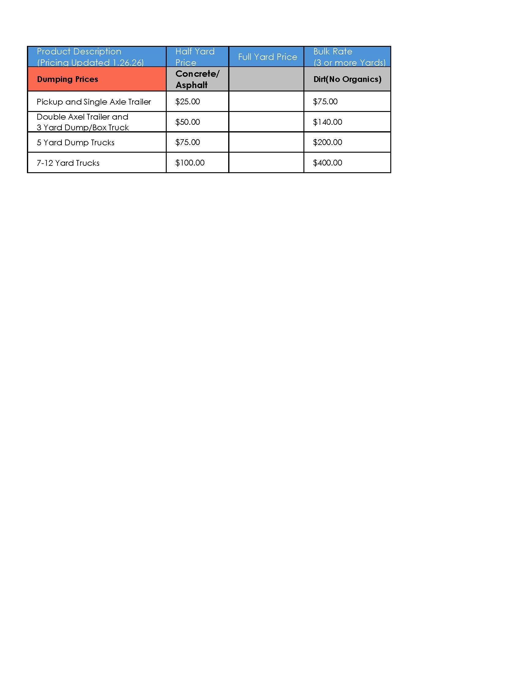 Hours of Operation/Dump Site Info