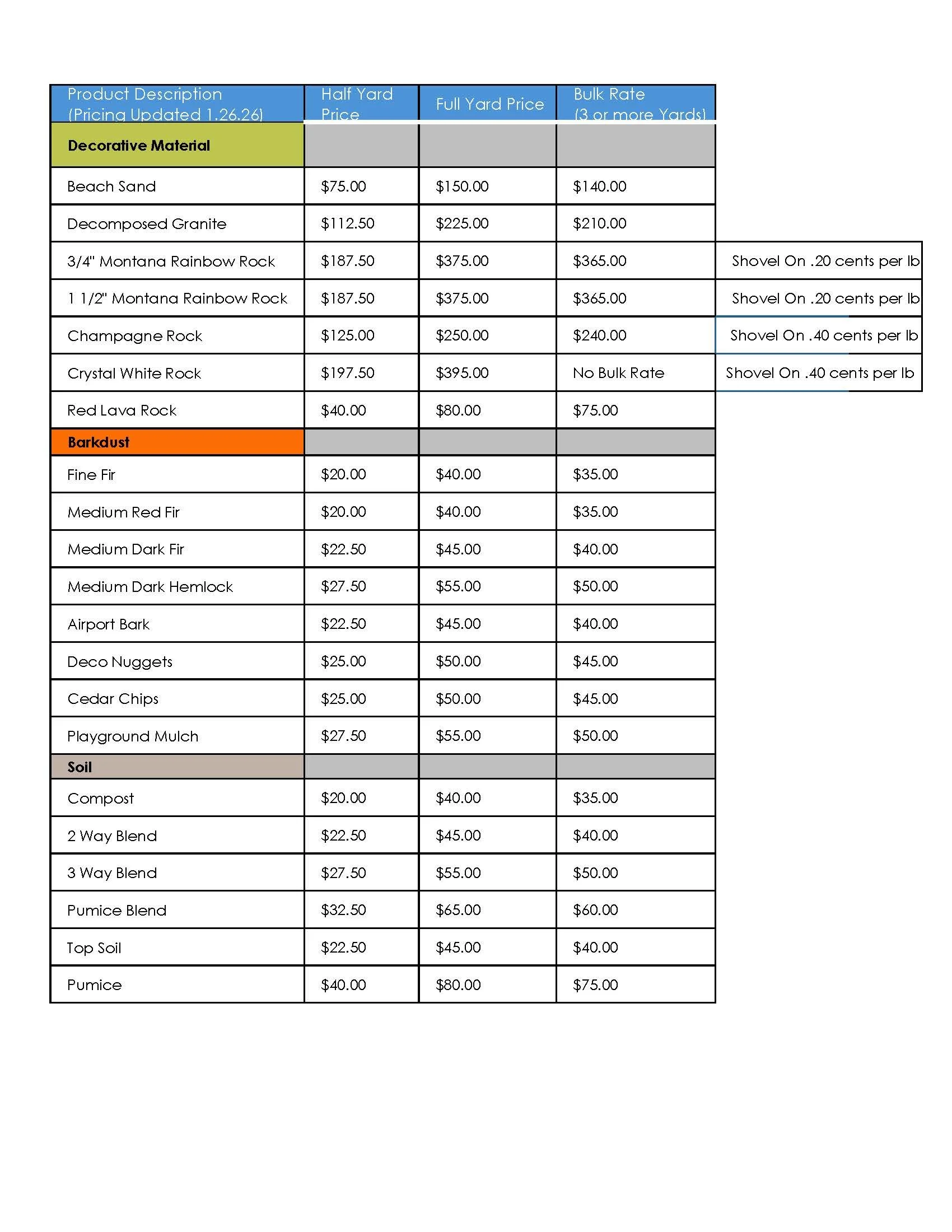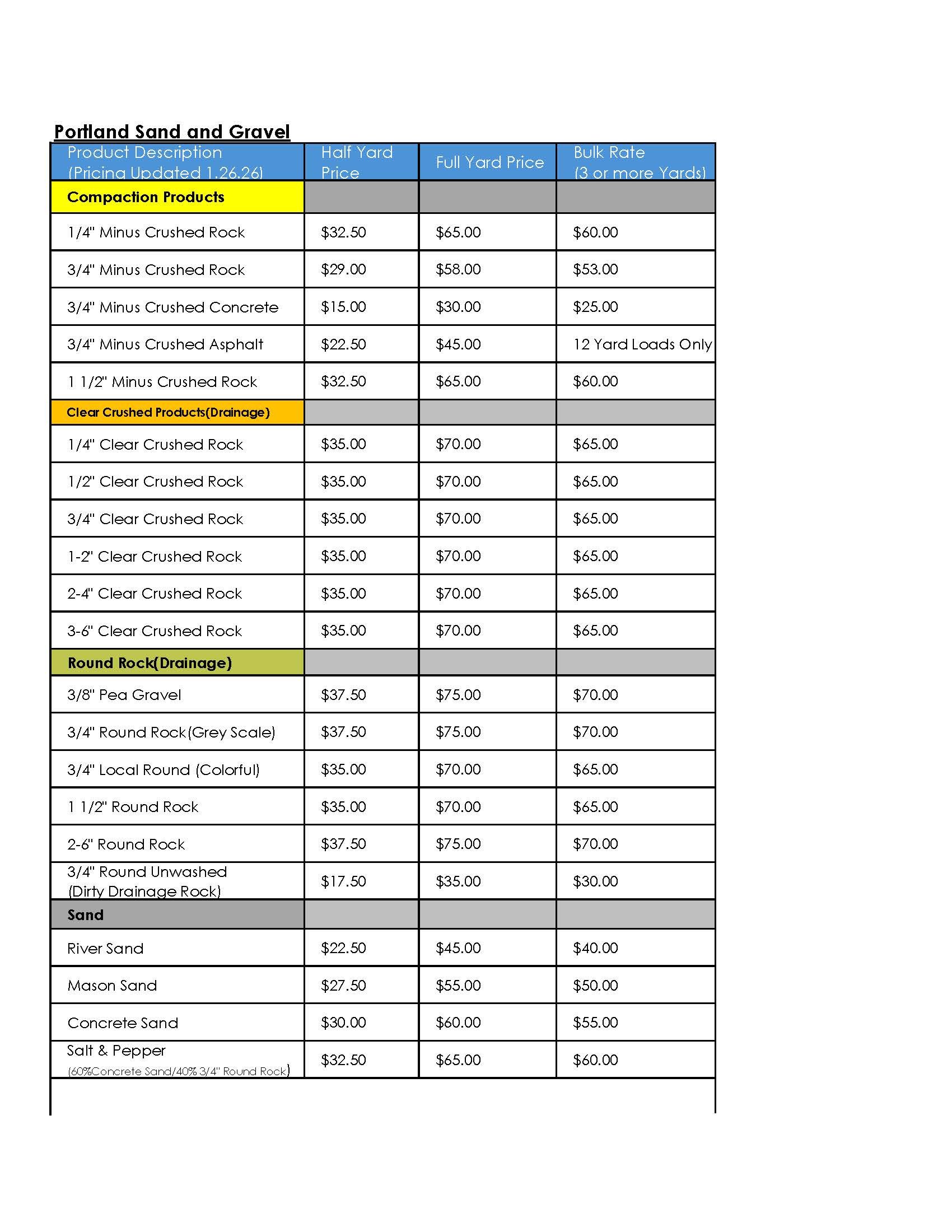 Price Sheet